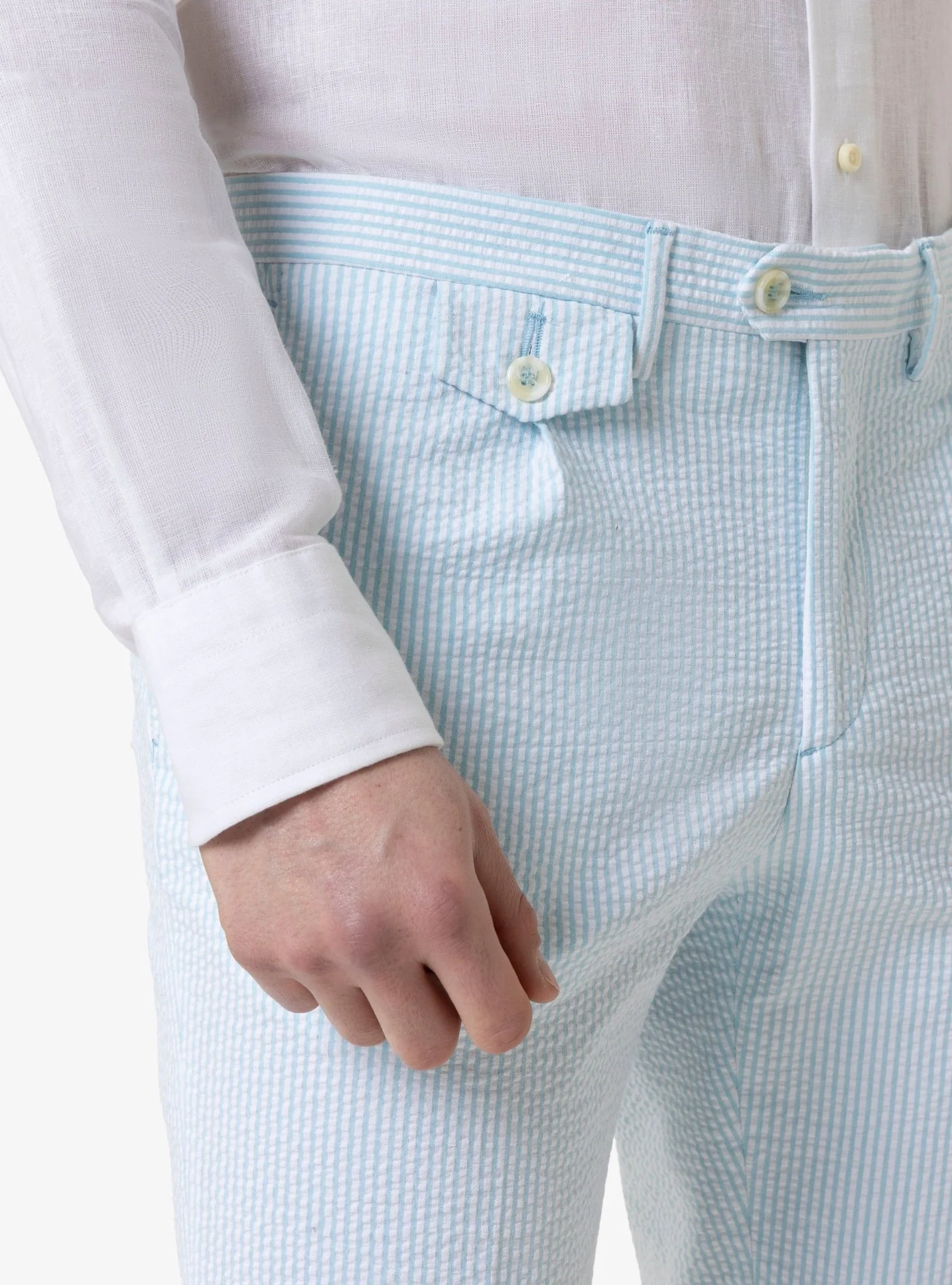 I bermuda Alizee offrono un mix perfetto di freschezza e stile. Realizzati in cotone goffrato, sono leggeri, traspiranti e ideali per affrontare le giornate più calde con eleganza. Il motivo rigato e il taglio Capri donano un tocco ricercato e rilassato, perfetto per la stagione primavera/estate. Un capo versatile, pensato per chi ama vestire con naturalezza e personalità.