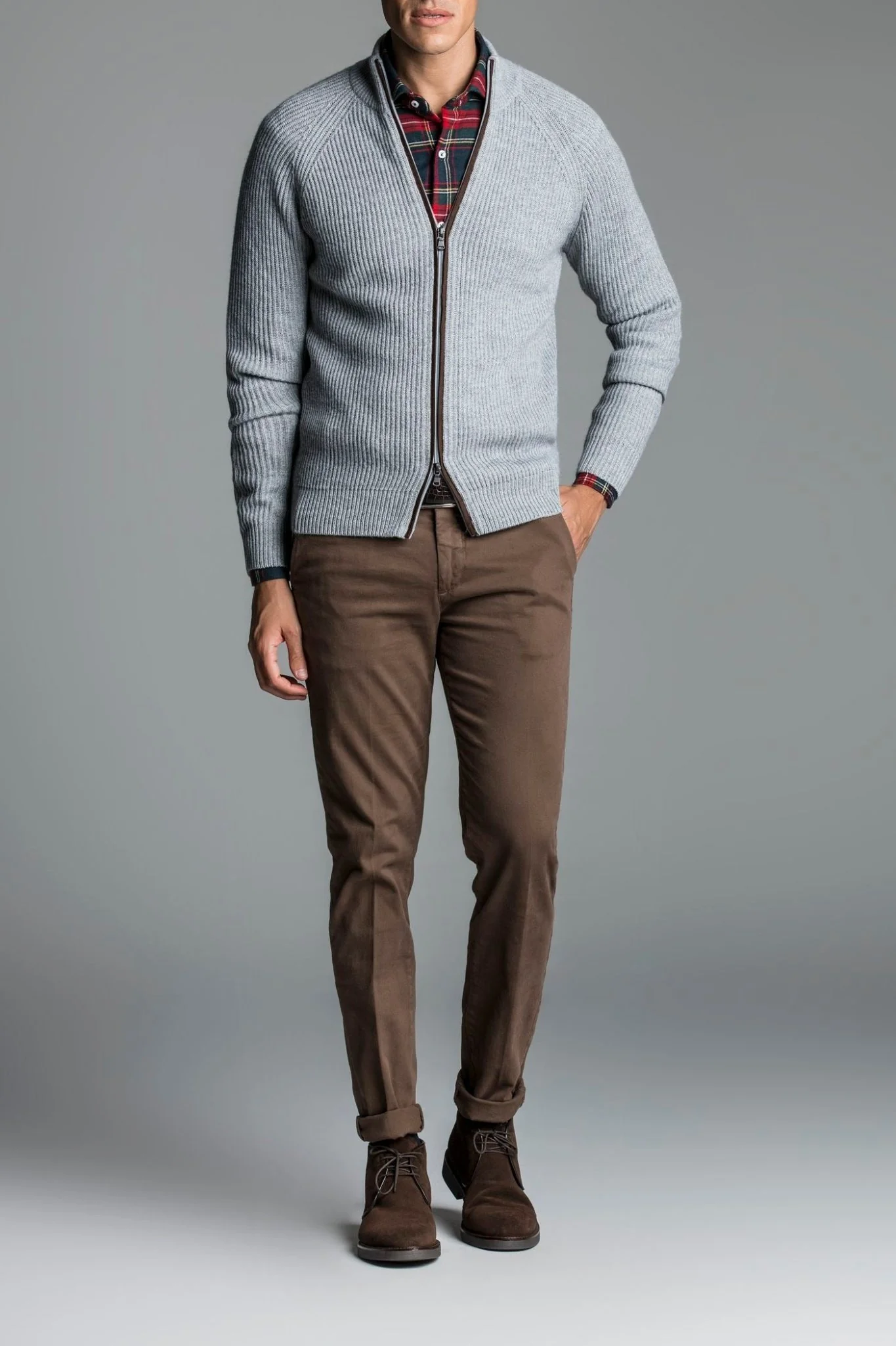 Un indumento perfetto per il periodo invernale, grazie anche alla percentuale di lana Cashmere, reso particolare dalla lavorazione a costina inglese, che aggiunge un aspetto ricercato, oltre a garantire una maggiore elasticità al tessuto.