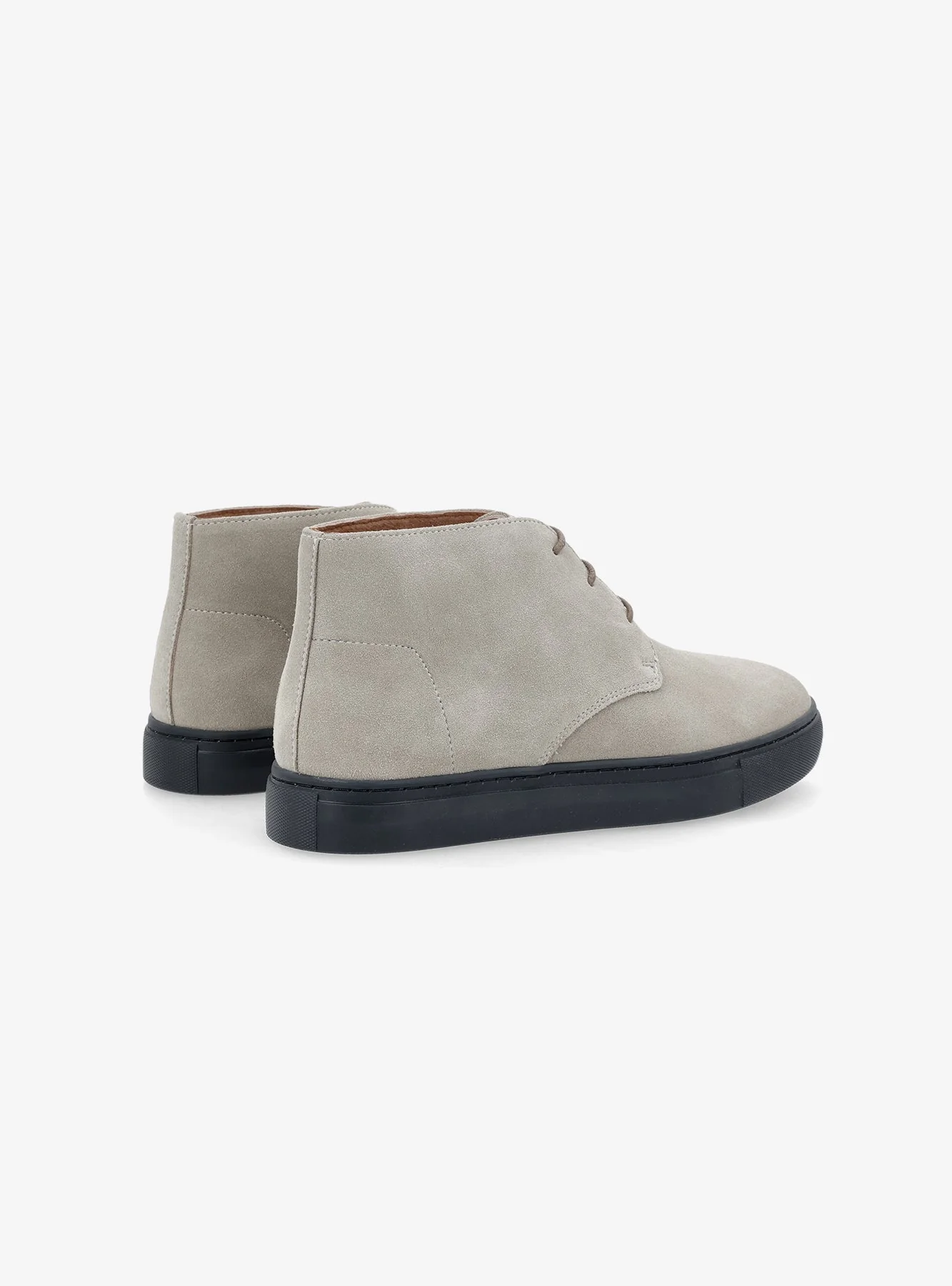 Le polacchine uomo in camoscio si distinguono per la loro struttura alta alla caviglia, che conferisce un look deciso e maschile, oltre a un maggiore supporto. Il sistema di allacciatura a due occhielli mantiene uno stile essenziale, che richiama la tradizione delle desert boots e dei modelli heritage, ma rivisitata in chiave moderna.